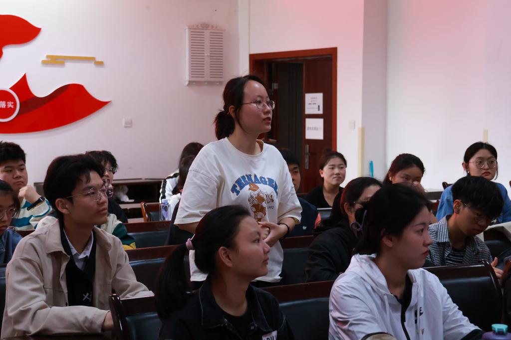 图为本科生团员胡丹妮提问