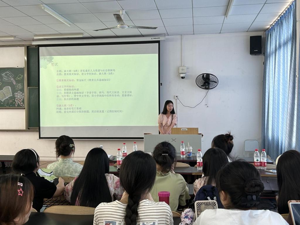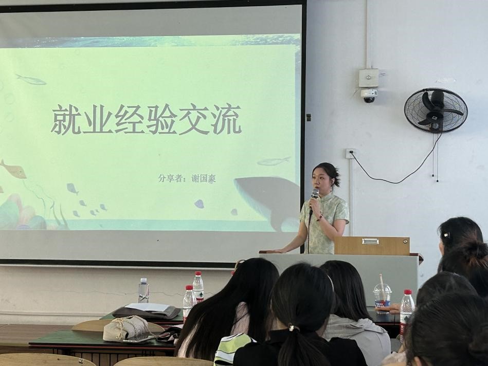 谢国爽向同学们介绍了她的就业情况、教学经验,让同学们对教师行业了解更加清晰,对于自己人生的选择更有把握。