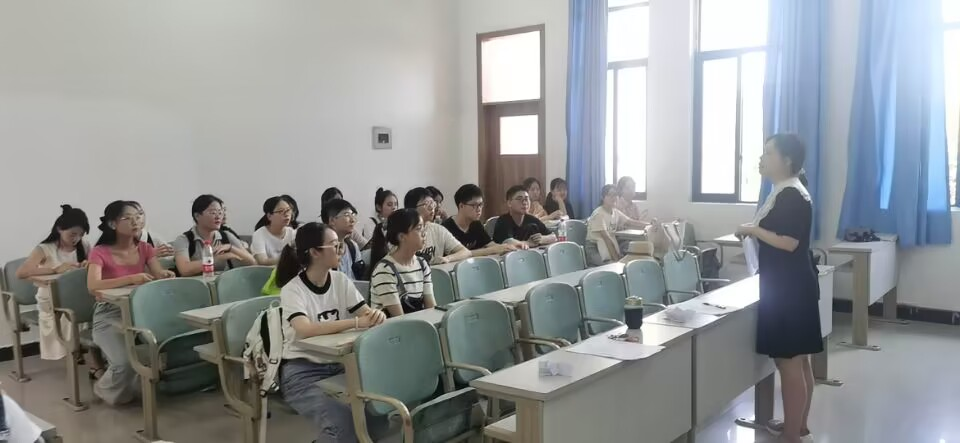 故事讲述能力是学前教育专业学生的必要能力之一。测查时同学们先从题库中随机抽取故事材料,准备10分钟后讲述。讲述需注意形体、语言、思维、情节等多方面的整体表现,使故事具有教育性、层次性、适宜性。评委有李琴、罗文红、吴晓云、谭雪莲、黄轶澜等老师。