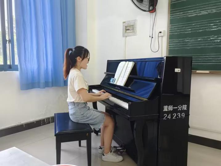儿童弹唱和儿歌表演唱是学前专业学生从事学前教育所必备的专业技能。同学们先从题库中抽取题目,当场进行弹奏表演,要求弹唱流畅完整,和弦运用自如、音准节奏正确,在表演唱环节还要有优秀的音乐表现力,保持舞蹈动作协调。教师从弹唱姿势、音乐表现力与感染力,平时练习注意事项,唱的节奏,提升整体音乐效果等方面给予同学们建议。评委有夏山、张莲、石萍、周练等老师。