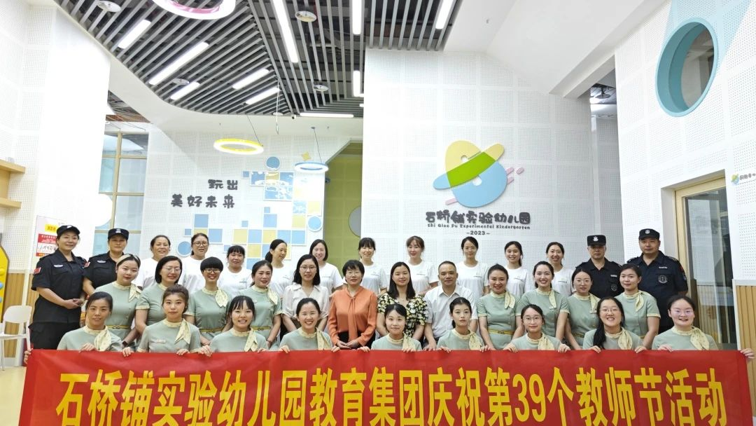 最后,学院领导和教师与石桥铺实验幼儿园的全园教职员工一起共同庆祝第39个教师节。