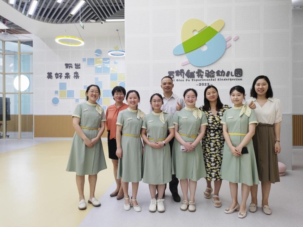 副书记李林霖、副院长杨思帆,学前教育系系主任蔡红梅、副系主任袁秋红一行4人来到九龙坡区石桥铺实验幼儿园,举行高校——幼儿园共建实践与就业基地签约暨授牌仪式。