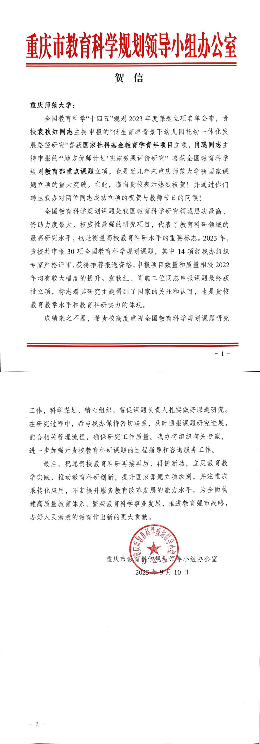 袁秋红博士主持申报的“低生育率背景下幼儿园托幼一体化发展路径研究”获国家社科基金教育学青年项目立项,肖聪博士主持申报的“‘地方优师计划’实施效果评价研究”获全国教育科学规划教育部重点课题立项。这是我校教育科学课题获国家级立项的重大突破,也是bl漫画