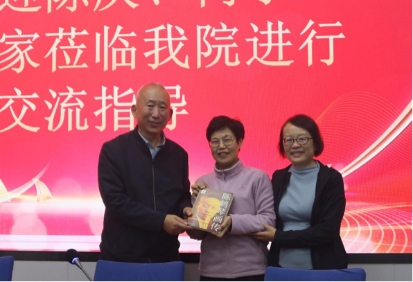 在座谈对话环节,两位老师对同学们的提问一一耐心回答。朱桂琴院长感慨致辞:“云山苍苍,江水泱泱,先生之风,高山水长;高山仰止,虽不能至,心向往之”,提议大家起立向陈鹤琴先生为代表的大先生致敬,并嘱咐在座师生要做大先生,要弘扬教育家精神。最后,两位老师寄语年青学子“把‘活教育’的种子传播下去”,并向学院赠书《陈鹤琴画传》。