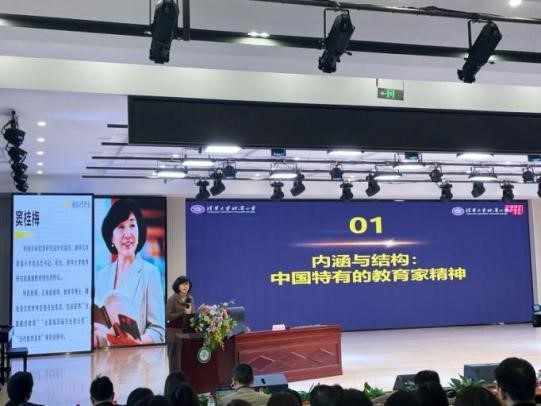 在题为《坚守三尺讲台——在班级里照见教师的未来》的讲座中,窦桂梅校长从学习和落实习近平总书记关于弘扬教育家精神的重要指示出发,讲述了她自己作为教师、班主任、校长的教育实践,用一系列案例阐述如何运用教育家精神在班级里照见未来,管理班级,让儿童站立学校正中央。