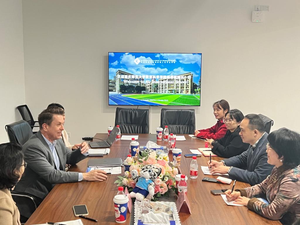 师生的到访表示诚挚的感谢,介绍该校的基本情况并引领访客参观校园。重庆市诺林巴蜀外籍人员子女学校致力于服务在渝外籍家庭,解决子女教育后顾之忧,提供国际教育多元化的选择,服务于重庆市经济社会发展、外商投资环境和配套,有良好的校园环境。该校招收的特殊儿童急需特殊教育相关的专业支持,我校师生代表应邀到访,拟为该校外籍特殊儿童提供更专业、更个性化的教育与康复服务。