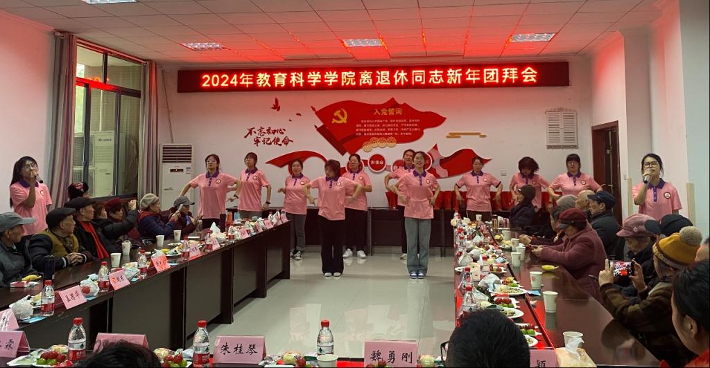 随后,来自21级教育学专业、23级学前教育以及特殊教育(信息与资源)专业的学生代表们,通过手语歌舞《新征程》的热情表演,向在场离退休老同志们表达了学生对老师的敬意以及新年美好祝愿,赢得了老同志们的阵阵掌声和一致好评。