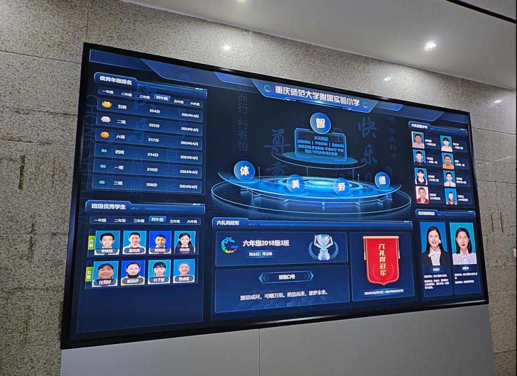 最后,郑校长介绍了学校的智能化设备——电子班牌。郑校长提出,学生的精神评价固然重要,但是也不能忽视学生的物质评价。于是学校研发了积分兑付机,学生可以通过电子班牌或者家长的手机实时查阅自己的成长积分,积分可用于兑换各种玩具、文创产品和零食。