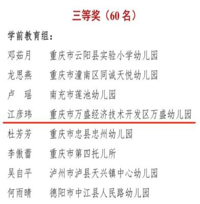 为大力弘扬教育家精神,以赛促建打造高素质专业化教师队伍,落实立德树人根本任务,推进大中小幼思想政治教育一体化建设,推动成渝地区双城经济圈教育协同发展,彰显新时代川渝青年教师“躬耕教坛,强国有我”的使命担当和青春风采,在第40个教师节来临之际,四川省教育厅、重庆市教育委员会组织举办“启航新征程 同心向未来”第三届川渝青年教师风采大赛,我校学前教育专业校友在其中表现优异。