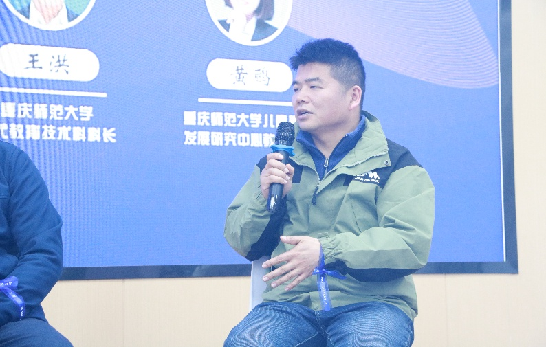 心奕心(重庆)科技有限公司总经理陈鹏则介绍了对孤独症儿童非接触性评估的进展,例如通过手指轨迹、行为轨迹、语言情绪识别、面部表情分析及眼球运动统计等技术手段实现高效精准的早期诊断。陈鹏总经理倡导与高校的合作,让科技使特殊儿童家庭受益的同时又鼓励学生服务于社会。