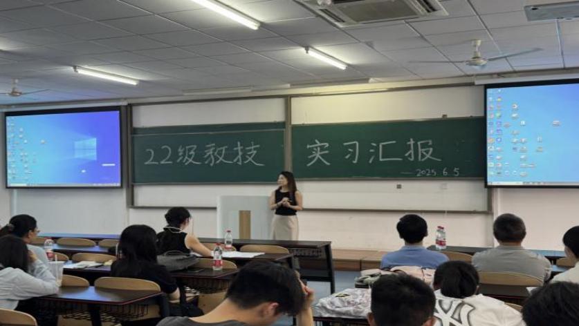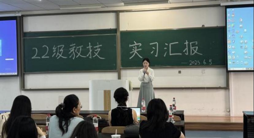 各实习小组围绕实习经历展开分享,在教学实践中,实习生们实现了从“站稳讲台”到“讲好一堂课”的不断进阶;在班主任工作里,积极摸索班级管理与家校协同育人的实用策略;在特色活动中,进一步理解“五育并举”的育人内涵。这些经历,让他们的综合素养得到了全方位的淬炼。