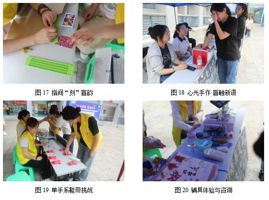 (4)单手系鞋带挑战:参与者尝试用单手完成系鞋带的任务,亲身感受肢体受限者在日常生活中的不便与努力。