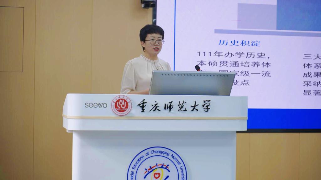 学前教育系主任蔡红梅就学科建设规划作专题汇报,从学科历史、现有基础、面临挑战、指导思想、目标设定、实施路径及保障机制等方面进行全面阐述,突出学前教育学作为教育学申博建设方向的重要支撑作用。