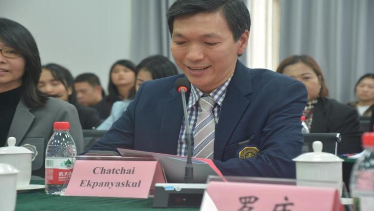 泰国诗纳卡宁威洛大学研究生院院长Chatchai Ekpanyaskul对学院的热情接待表示感谢,并介绍了泰国诗纳卡宁威洛大学特殊教育专业十分重视与国外高校的交流合作,期待未来两校能有更多交流机会,携手为特殊教育事业贡献力量。