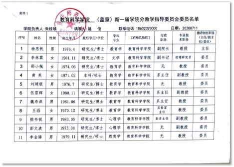根据学校《关于做好学院分教学指导委员会换届工作的通知》,学院严格依据学校教学指导委员会章程要求的程序和要求,开展了分教学指导委员会换届工作。新一届学院分教指委名单如下:杨思帆、李林霖、邵小佩、黄英、刘建银、伍雪辉、魏寿洪、王滔、熊韦锐、彭文波、李金臻。