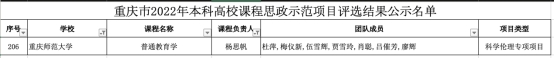 《普通教育学》获重庆市 2022 年本科高校课程思政示范项目认定