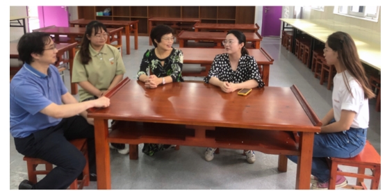 6月17日14时,朱桂琴院长、心理系副系主任熊韦锐老师、心理系张雪萌老师一行三人,前往重庆科学城富力南开小学进行实地走访调研,与富力南开小学学生健康服务中心尹鹏老师、实习学生黄楚炜、刘柯欣进行调研交流。