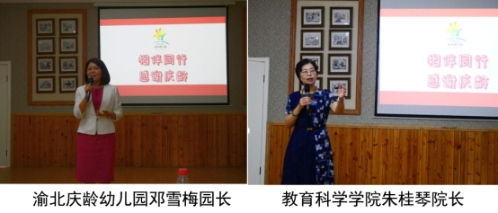 6月24日上午,朱桂琴院长赴渝北区庆龄幼儿园参加2022届学前教育专业本科生毕业实习总结汇报活动。邵小佩教授带领50名学前教育在校生一同前往观摩学习。入园之后,朱桂琴院长、邵小佩教授与邓雪梅园长亲切交谈实习生在园的实习生活情况,一行人参观了园内环境和户外活动。