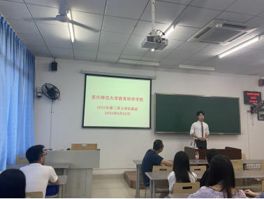 随后,杨院长对下学期的教学工作进行了安排和部署。第一,各个教师应做好听课记录,完善听课内容,多听其他老师的课才能不断提升教师的教学能力;第二,积极组织首届川渝师范技能比赛,鼓励学生积极参加,认真准备,做好参赛选手的指导工作;第三,提前谋划一流课程申报和建设以及创新创业比赛;第四,思考本科人才培养模式改革和培养方案的修订工作。