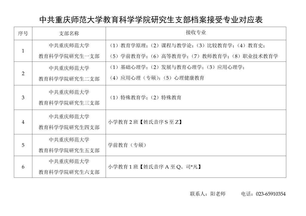 学院研究生党支部档案接受专业对应表