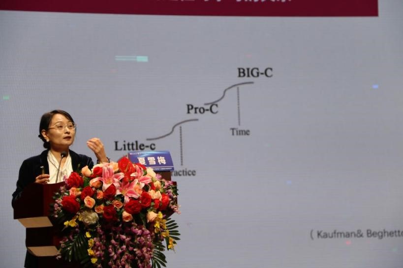 上海市教育科学研究院普通教育研究所夏雪梅教授作了题为《学科项目能否提升学生在学科领域和真实世界中的创造力:语文项目化学习的准实验研究》的主题报告。