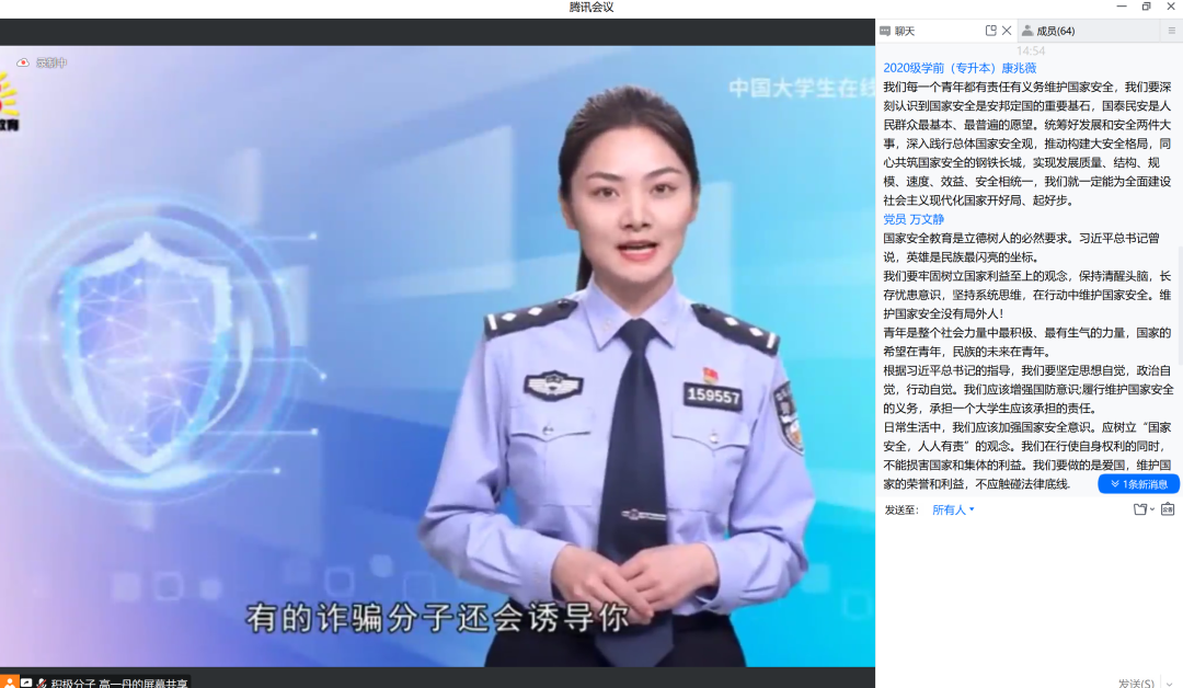 随后,全体与会同志同志共同观看了“千万师生同上一堂国家安全教育课”为主题的公开课,同志们积极发表自己的见解和看法,共同交流学习成果,相互学习,共同进步。