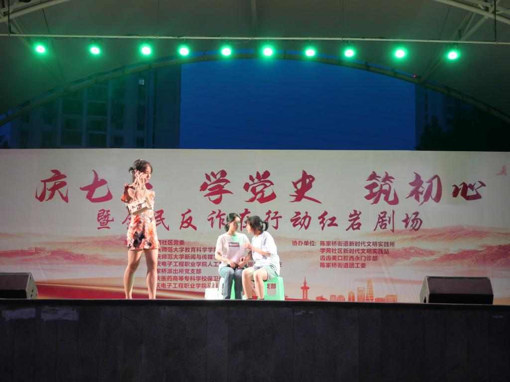 教工二支部携手新闻与传媒学院影视系支部与陈家桥街道学苑社区、陈家桥派出所党支部、周边高校等单位联合开展全民反诈宣传剧场。2023年6月28日下午7点,bl漫画