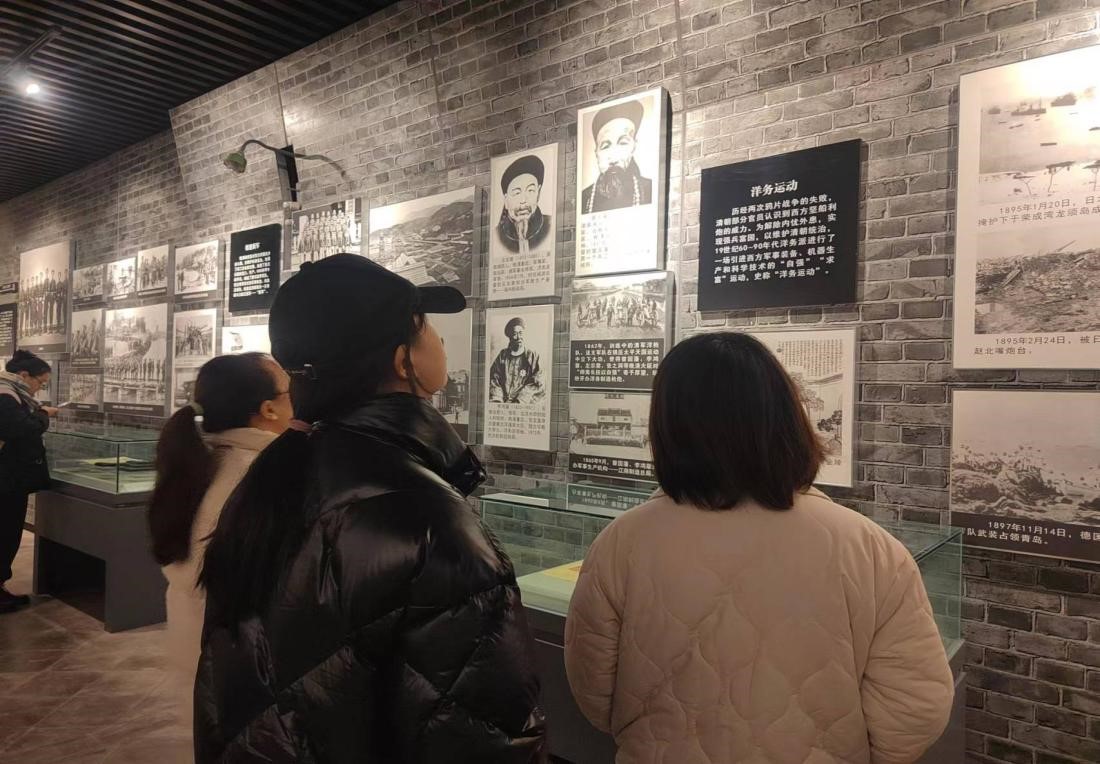 图为支部党员在展厅认真观看“洋务运动”的介绍