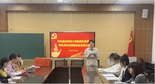 学生本科支部在砺志楼T2421召开党员大会,开展党支部换届选举。会议由吴小东同志主持,支部全体党员参加。