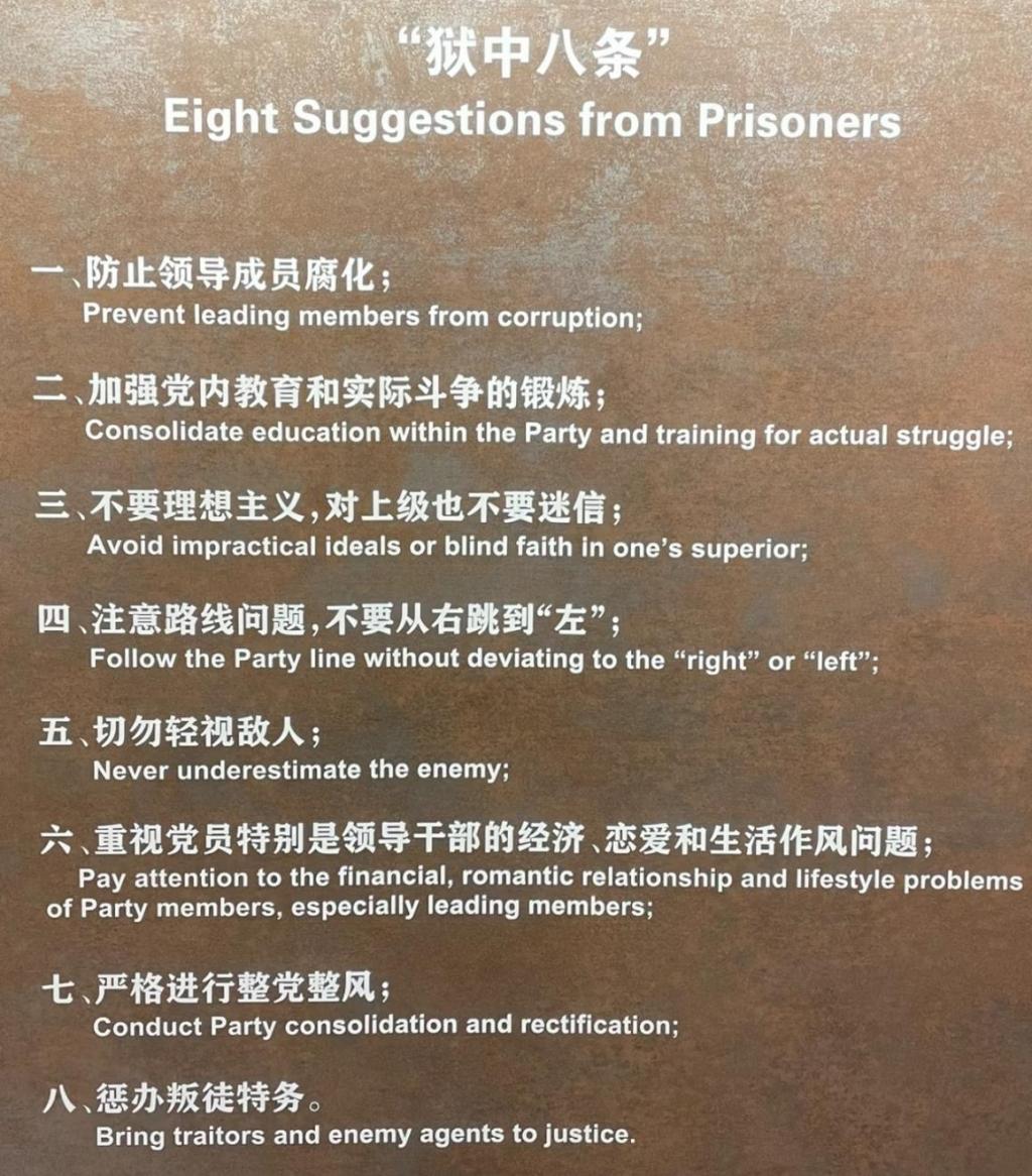 同志们怀着无限敬仰之情移步至白公馆旧址。陈列室内一件件饱经沧桑的文物、一幅幅历史图片和详实的文献资料,生动再现了革命先辈在极端恶劣环境下坚守信仰、宁折不弯的斗争历程。同志们久久驻足,无不被革命先辈在极端恶劣环境下坚守信仰、宁折不弯的精神所深深震撼。讲解员深情讲述了“狱中红旗”与“狱中八条”两个闪耀信仰光芒的感人故事:罗广斌等同志凭想象秘密制作寄托忠诚与期盼的“五星红旗”;“11·27”大屠杀前夕,罗广斌等根据狱中党组织讨论总结出《狱中意见》(即“狱中八条”),这份浸透鲜血的嘱托,内容涉及防止腐化、加强教育、重视作风、严格整风等,其深刻的现实警示意义历久弥新。